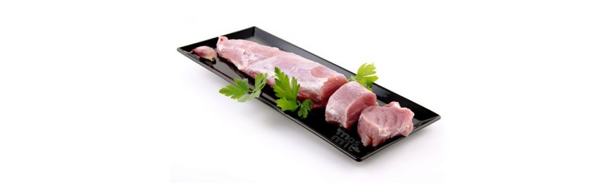 El cerdo blanco, tiene unas características completamente distintas a las del cerdo ibérico,no sólo morfológicamente hablando, sino en lo que se refiere a su crianza y alimentación, son dos razas totalmente distintas.El cerdo blanco es el tipo de cerdo más generalizado por toda la península y se cría en granjas extensivas a base de piensos, es una tipo de carne menos infiltrada pero no por ello menos tierna.Existen multitud de tipos de razas, hay casi 100 tipos de razas porcinas reconocidas, siendo las más comunes el cerdo blanco Belga, Duroc, Large White...La que habitualmente se trabaja más es la raza DUROC por su gran calidad.